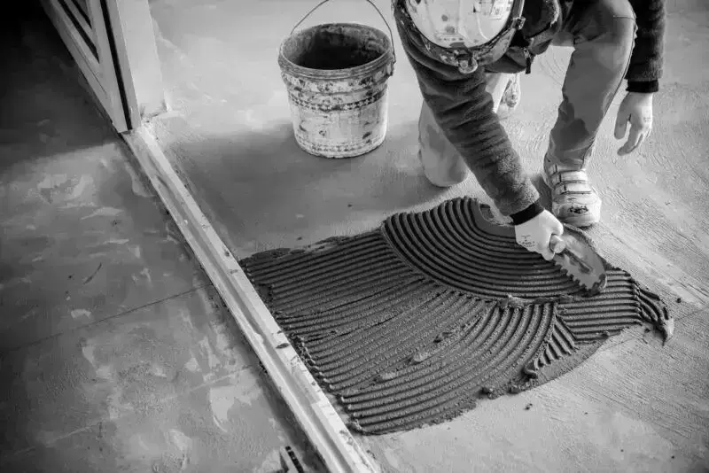 タイルを貼り付ける際には、まず下地の確認や補修作業を行い、その後接着剤を使ってタイルを貼り付けます。